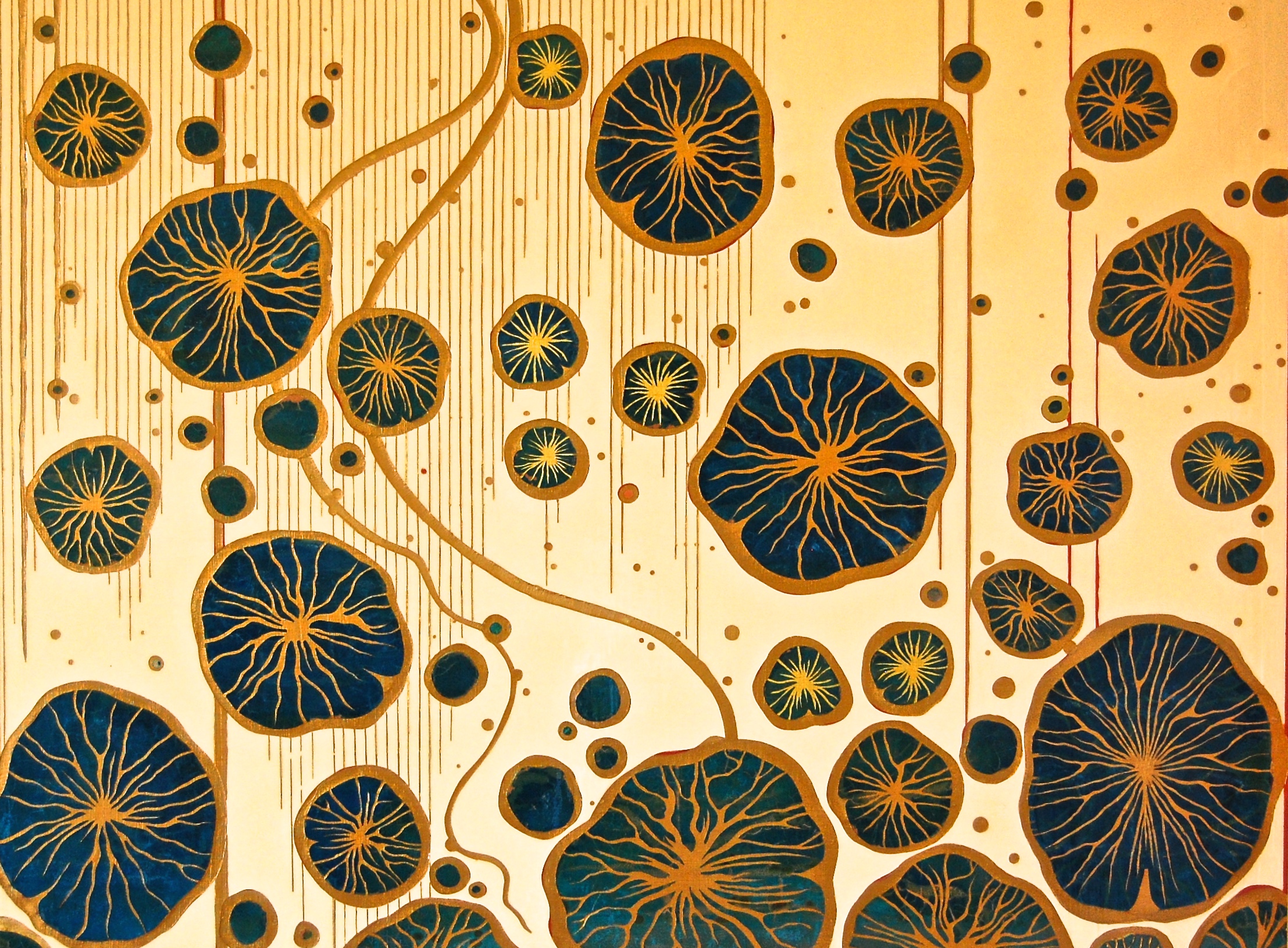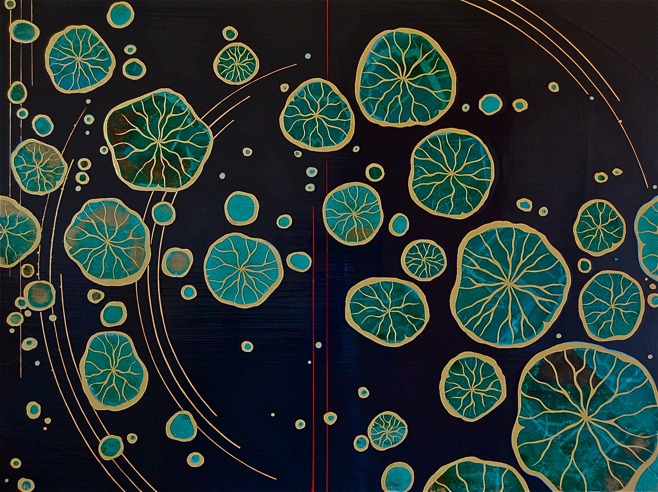 Midnight Lotus 2015 36 x 48″ Acrylics and metal leaf on panel