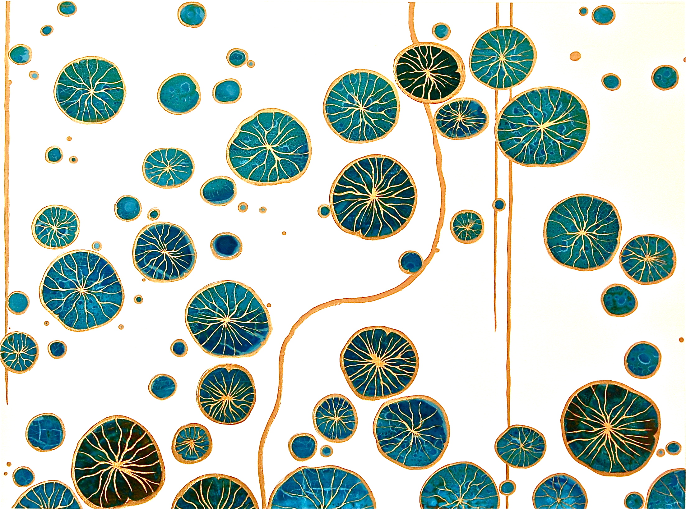 Sunrise Lotus 2015 36 x 48″ Acrylics and metal leaf on panel *Featured in ‘Planet of the Apps’, Apple’s TV series, with Gwyneth Paltrow and Jessica Alba*