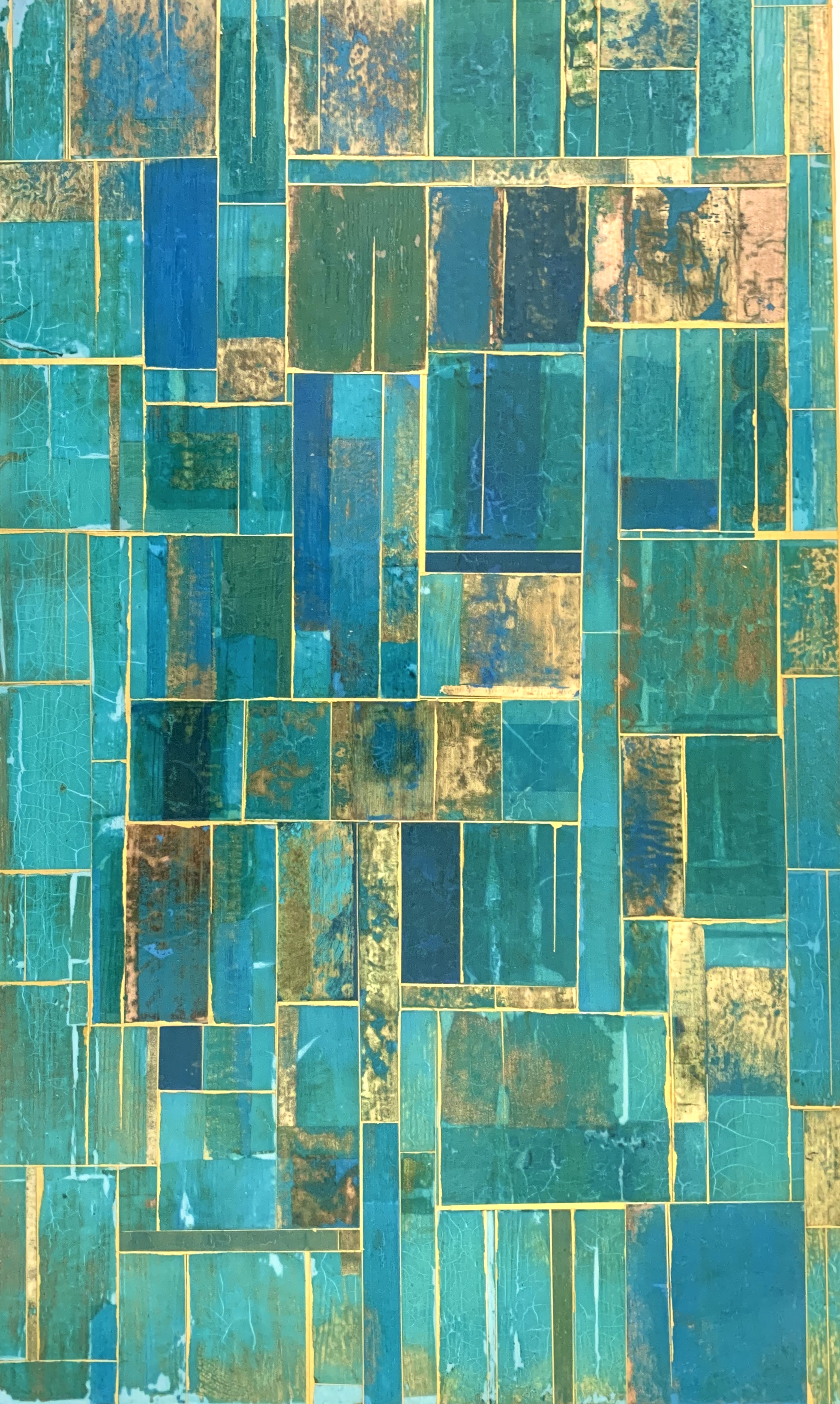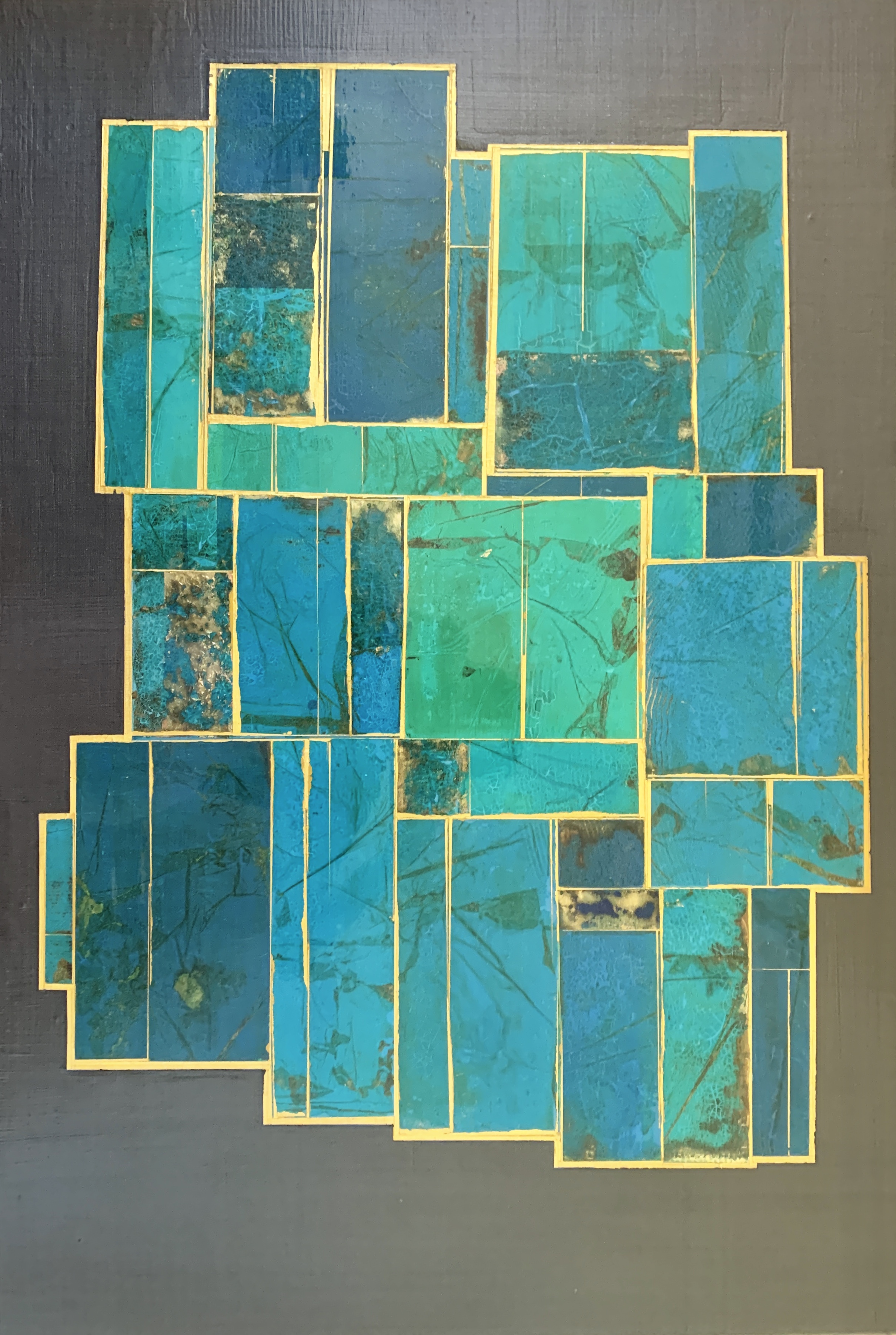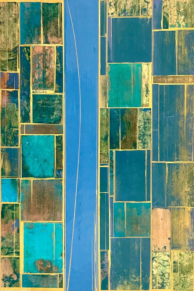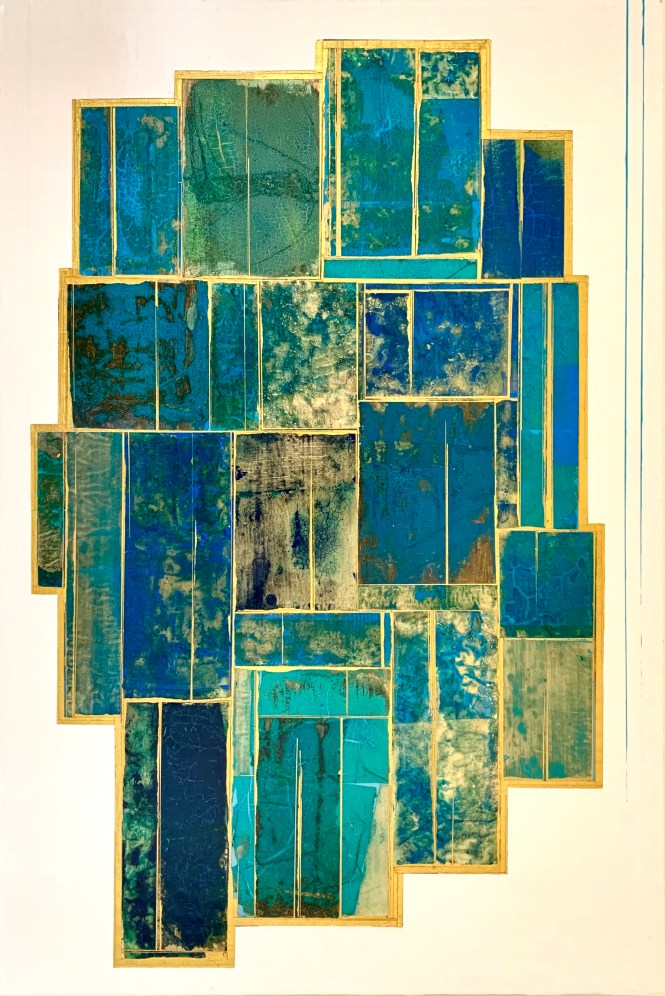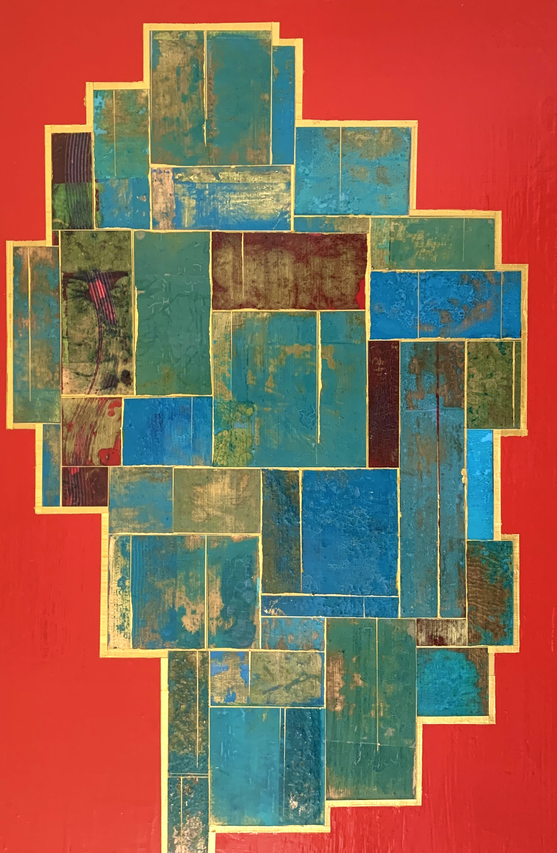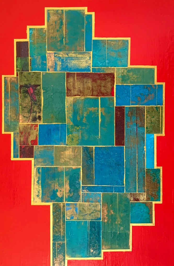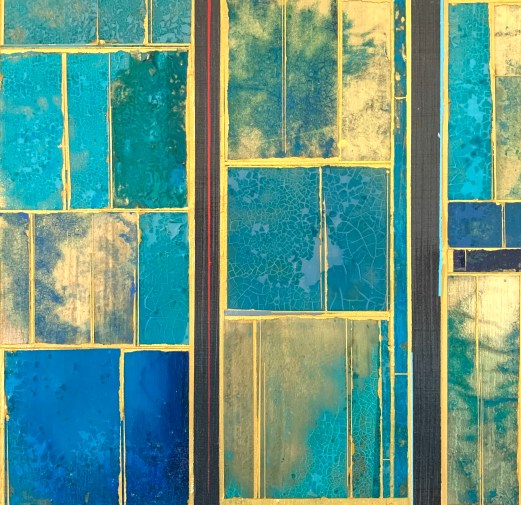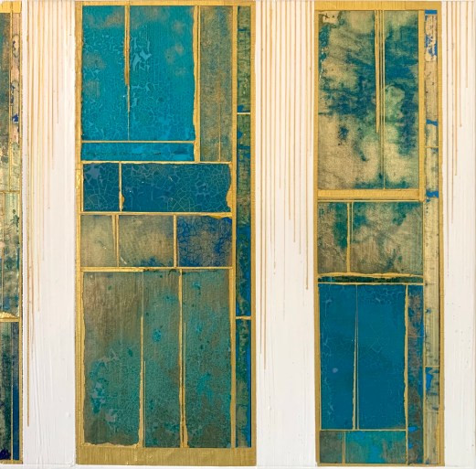 Acrylics and metal leaf on panel