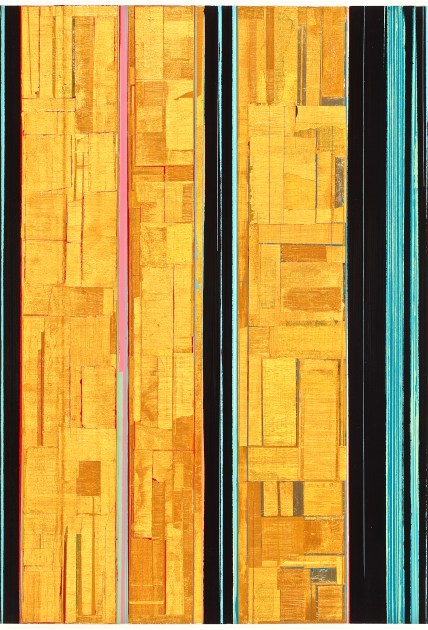 Acrylics and metal leaf on panel. *In permanent collection at City of Las Cruces Museum System*