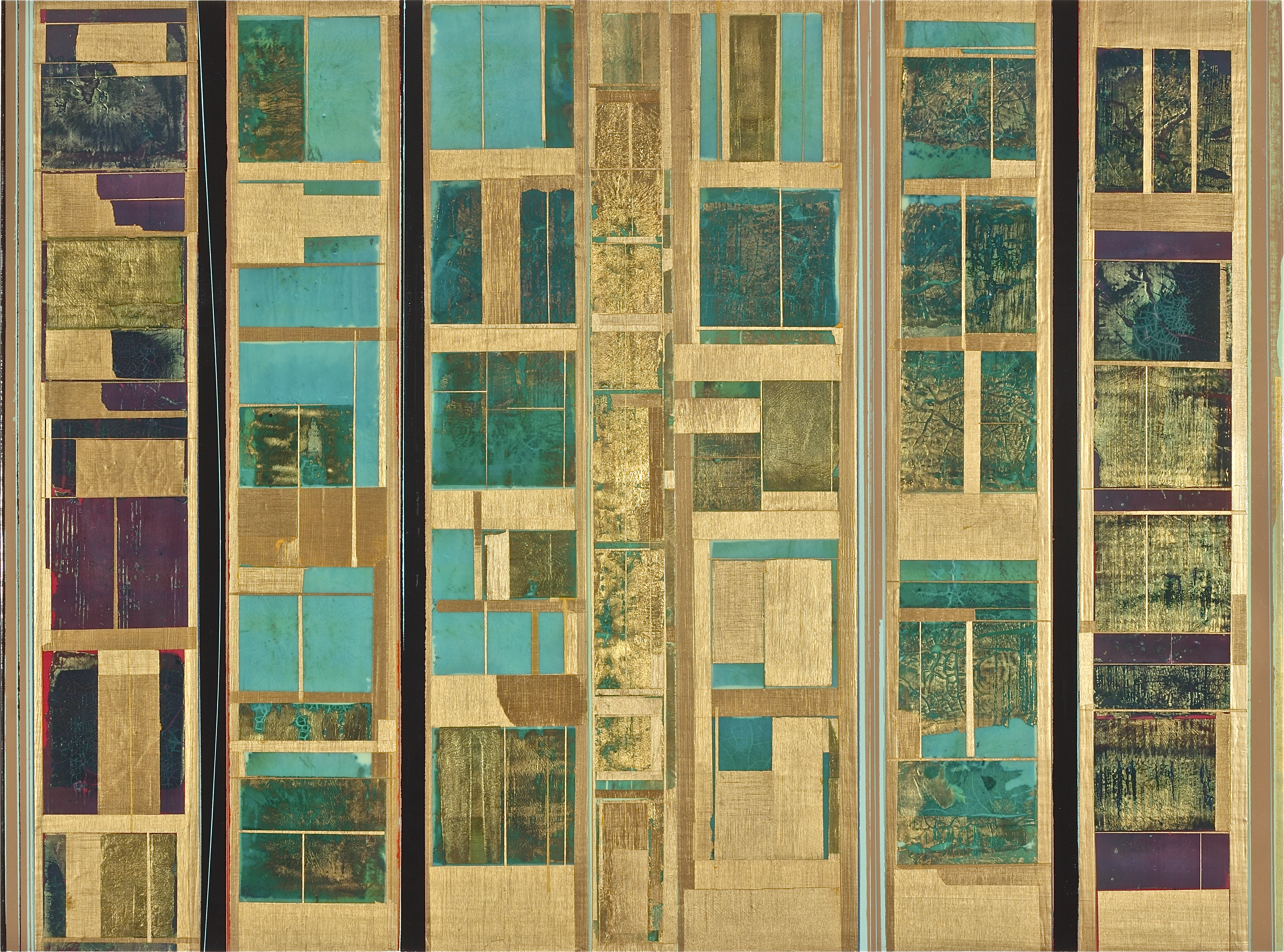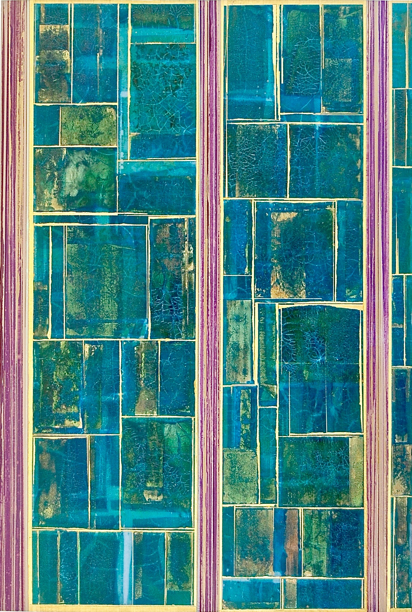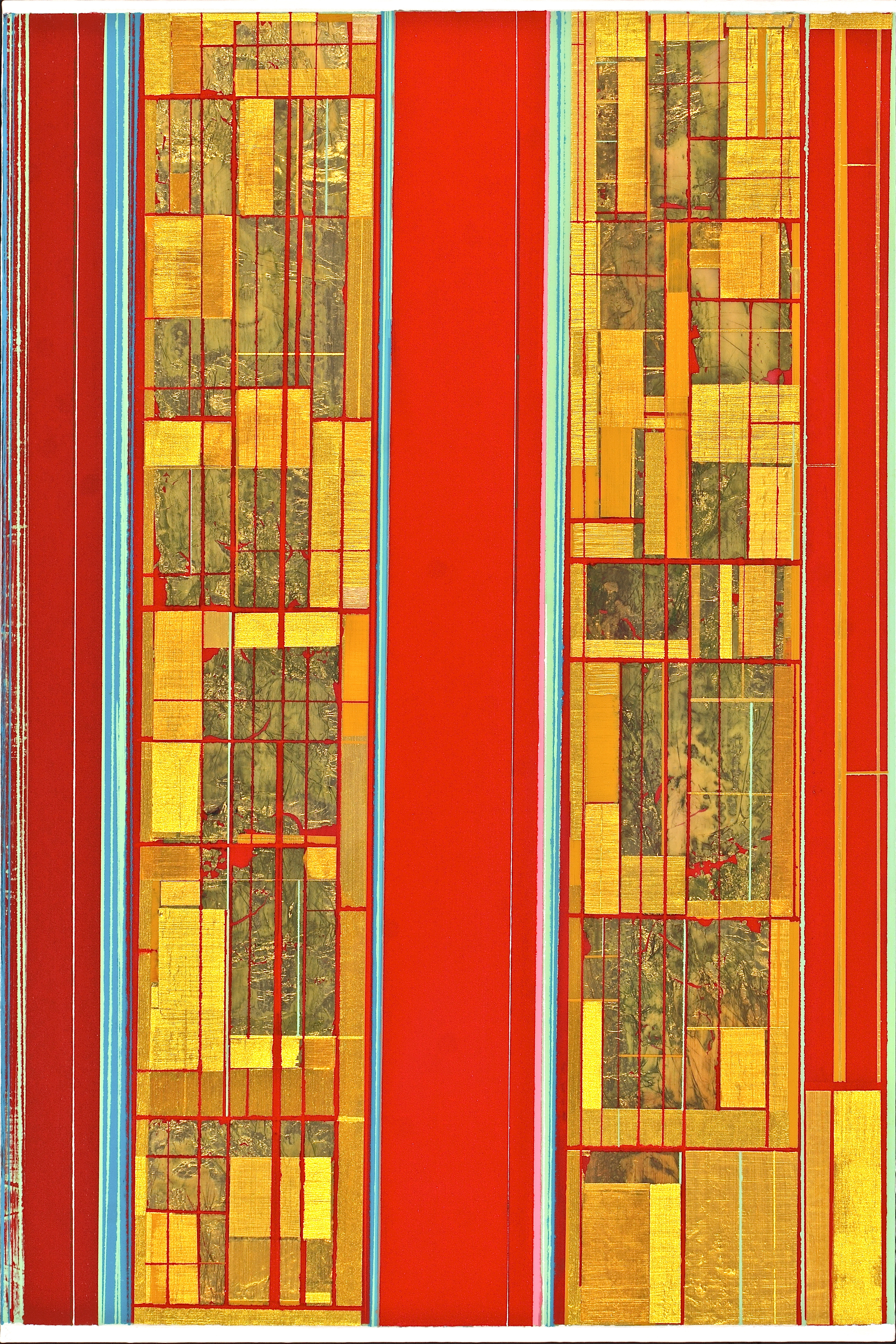 Acrylics and metal leaf on panel. *In permanent collection at City of Las Cruces Museum System*